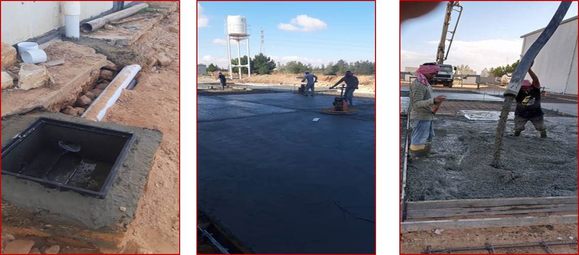 تقوم إدارة المشروعات بجهاز استثمار مياه منظومة جبل الحساونة الجفارة للنهر الصناعي بالإشراف المباشر على تنفيذبعض الأعمال الخارجية والمتمثلة في تنفيذ بلاطة خرسانية وقناة تصريف المرجين كجزء من الأعمال الخارجية المكملة لمعصرة الزيتون بمشروع ترهونة الزراعي .