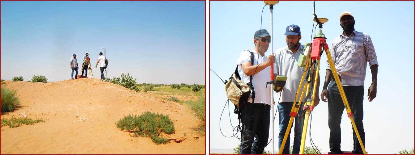 وهذا الفريق المساحي المجهز بكامل الامكانيات والاجهزة الحديثة والمتطورة المخصصة للرفع المساحي للقيام بمعرفة أبعاد ومساحة المنطقة وتحديد الاحداثيات و طبيعة المنطقة الطبوغرافية وذلك تمهيداً لتنفيذ أعمال التسوية وإزالة الكثبان الرملية لاستهداف زراعتها وكذلك لحماية الحقول الزراعية من ظاهرة زحف الرمال ،و في هذا الصدد تتقدم إدارة الجهاز كل الشكر والتقدير للفريق المساحي ولكل من ساهم في تنفيذ هذا العمل والشكر موصول لكل العاملين بالمشروع على مجهوداتهم.