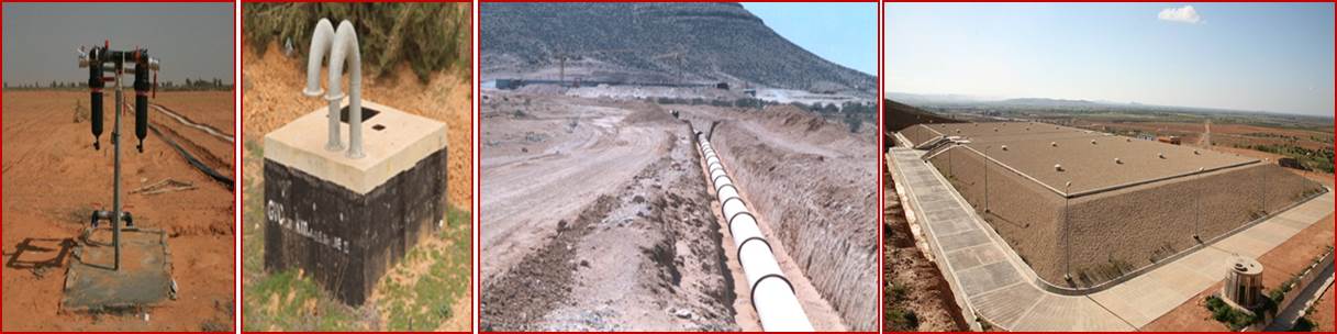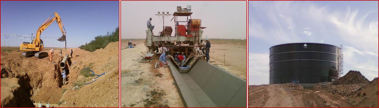 - تنفيذ شبكة ري رئيسية بطول 39 كم تتراوح أقطارها من ( 300-1400) مم من مواسير الدكتايل .