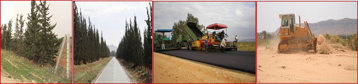 - تنفيذ أعمال غرس 700,000 من أشجار مصدات الرياح من مختلف الأنواع للمحيط الخارجي للمشروع وعلى جوانب الوديان وحدود تقسيمات المزارع .