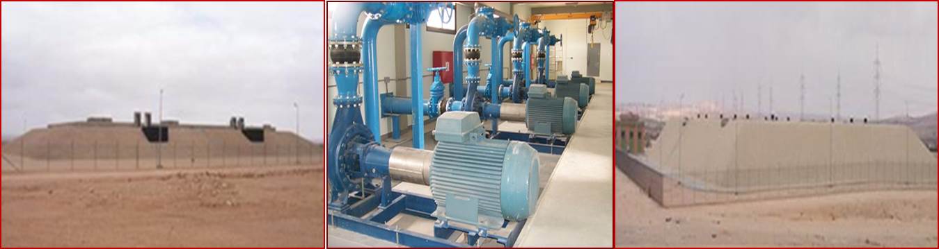 - خط النقل الرئيسي بطول (35) كم من أنابيب الألياف الزجاجية المسلحة (GRP) بأقطار 1100 مم.