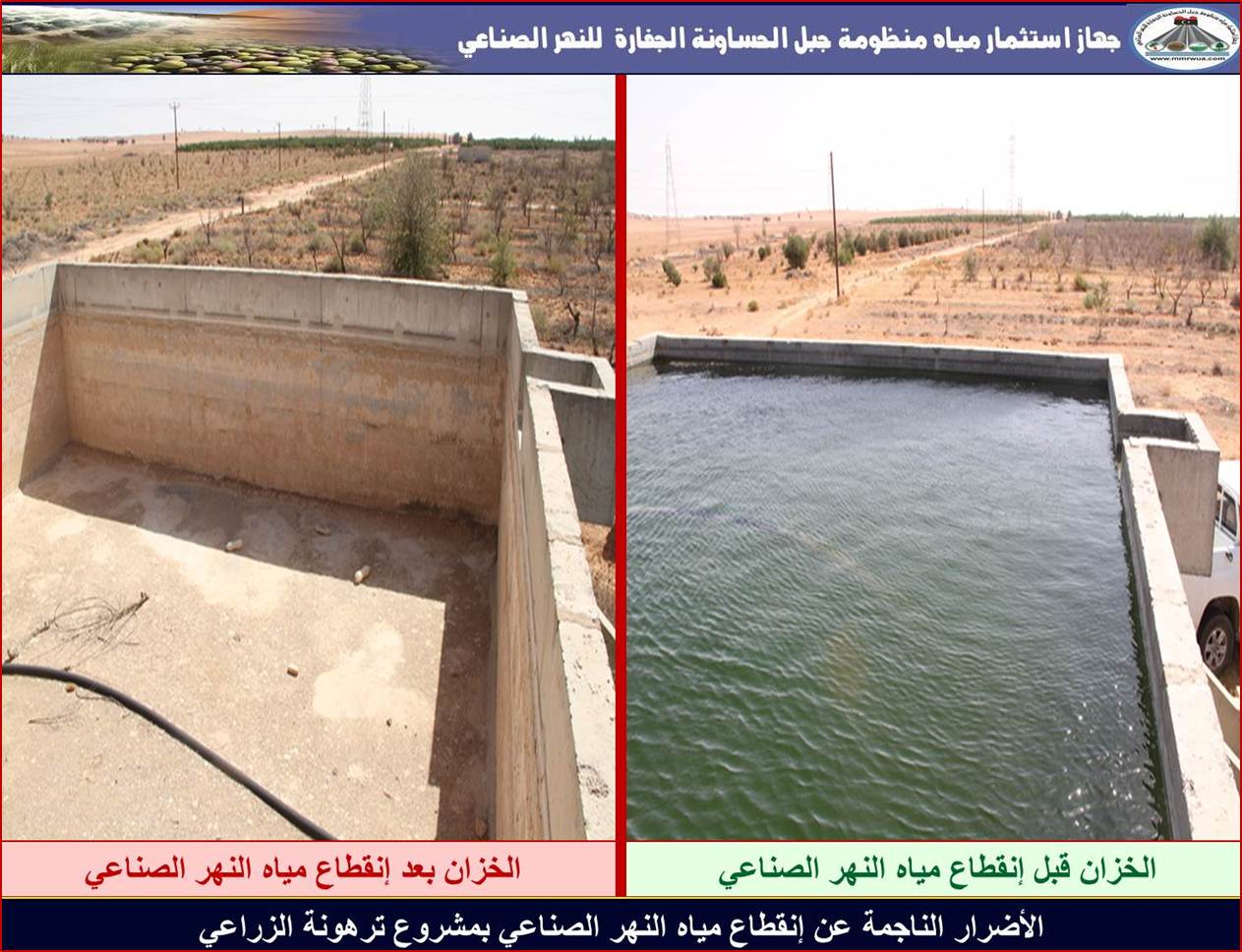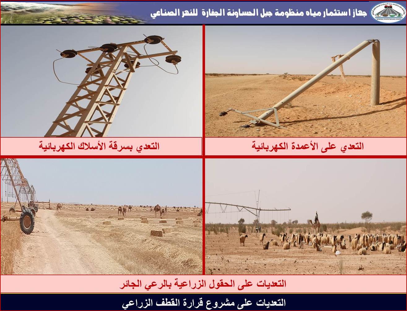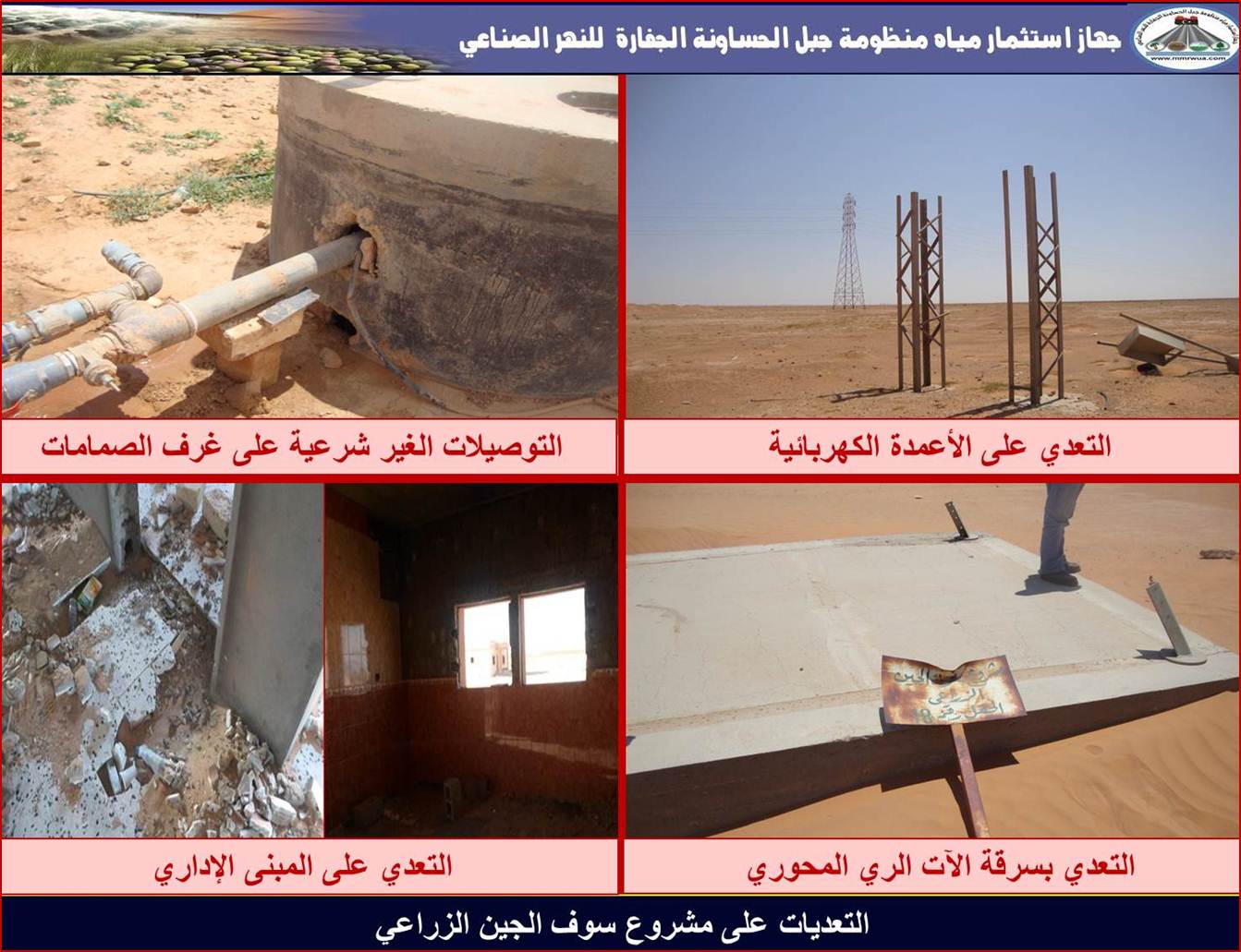 المخاطر الناجمة عن المشاكل الفنية والاعتداءات المتكررة على البنية التحتية لمشروع النهر الصناعي لمنظومة الحساونة الجفارة وتأثير ذلك على الامداد المائي للمدن و المشاريع الزراعية