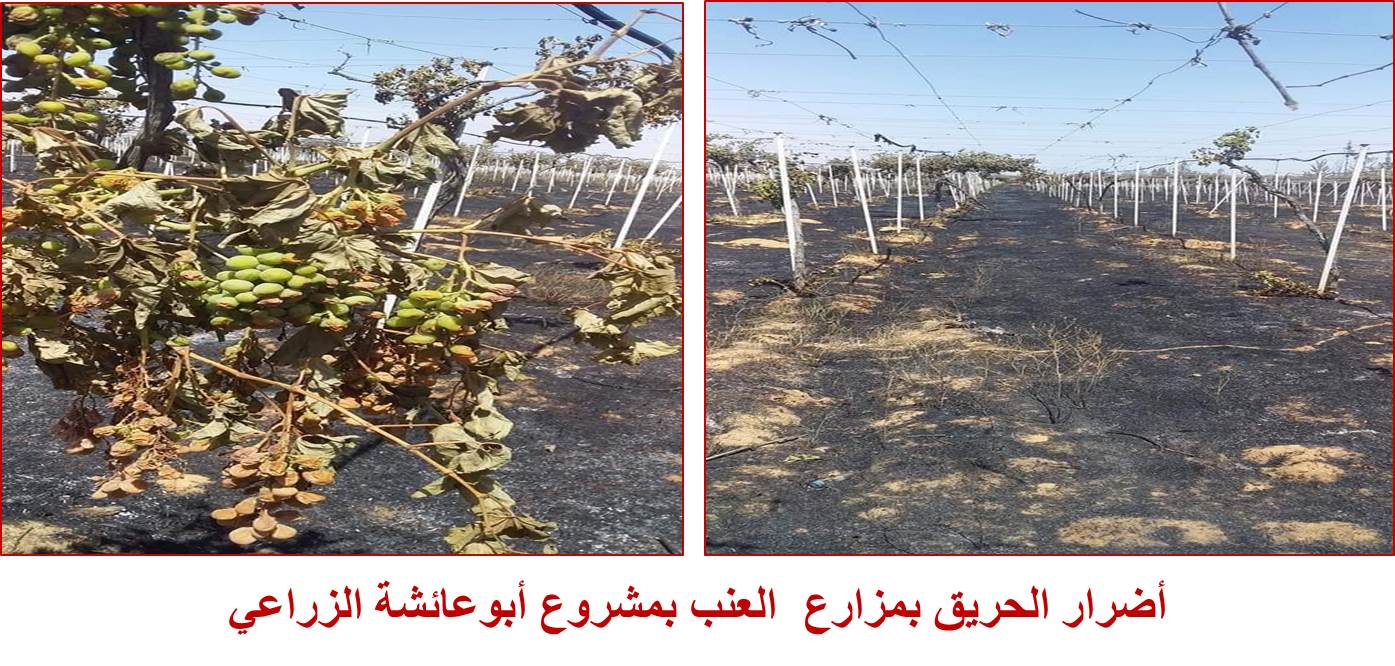 حريق في بعض مزارع مشروع أبوعائشة الزراعي