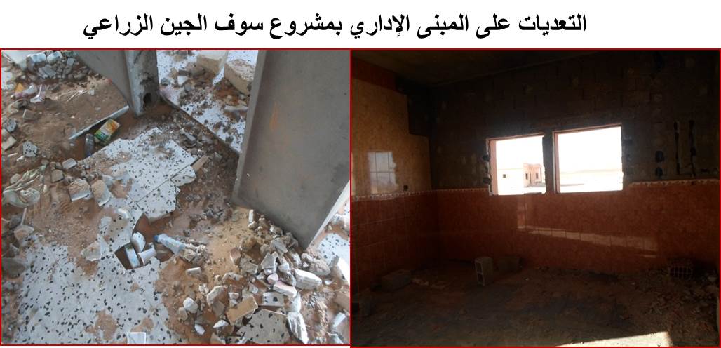 · التعدي على الشبكات الداخلية بالمشاريع وكذلك الحقول الاستثمارية والبنى التحتية من خطوط نقل وخزانات ومحطات ضخ والذي سبب اضرار كبيرة بهذه المشاريع ويهدد بإيقاف العمل في أجزاء كبيرة منها .